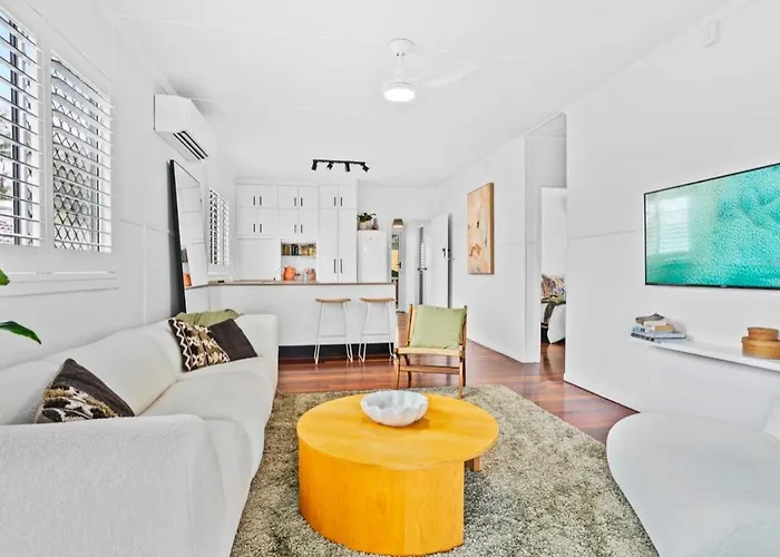 The 2-bedroom holiday home is located in the Palm Beach district, 2.2 km from the Burleigh Head National Park. Family tourists will enjoy proximity to the heritage - listed zoological garden "Currumbin Wildlife Sanctuary", which is 15 minutes away by car. The Tally Shack villa is within 2 km of Tumgun Lookout.